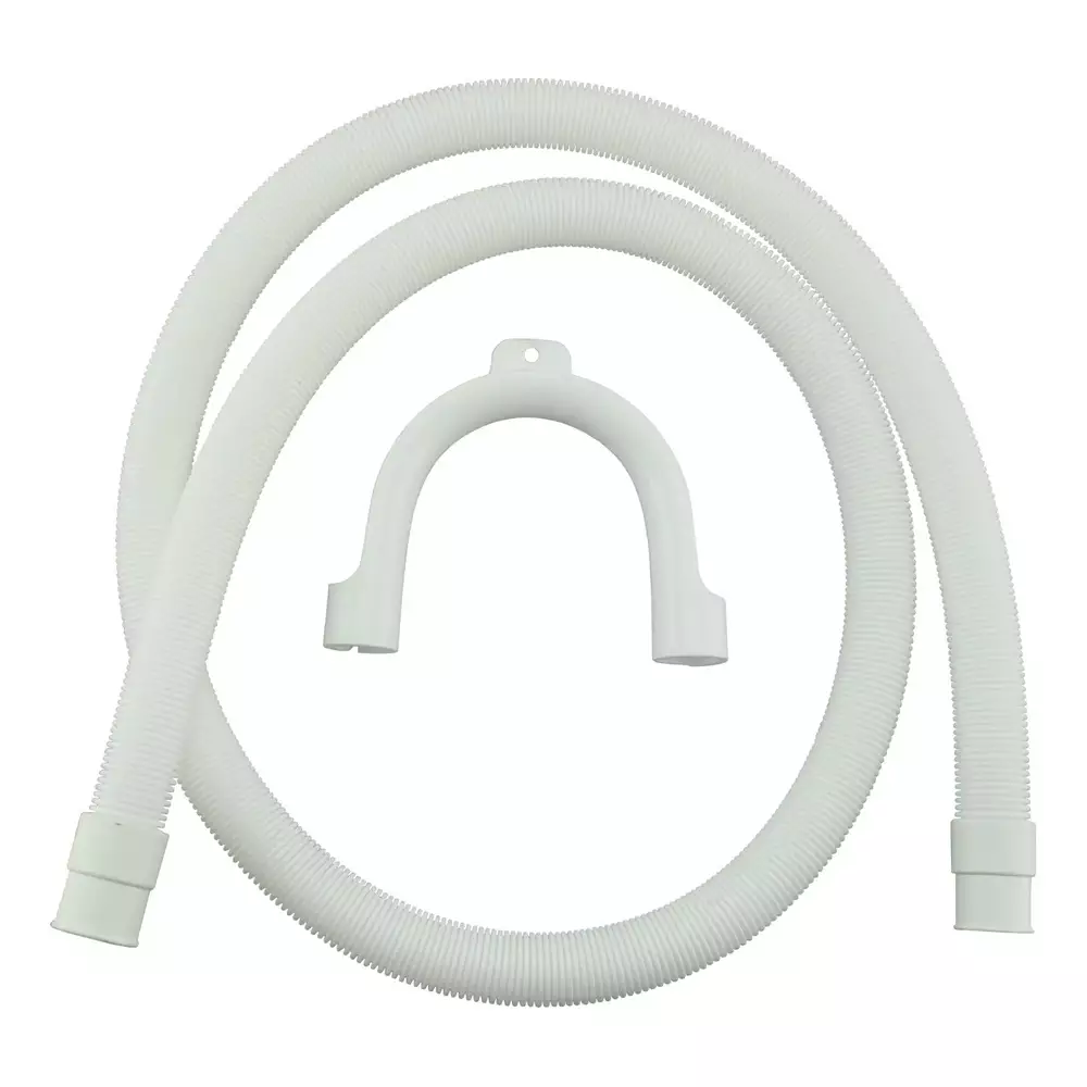 Muovinen pesukoneen poistoletku veden poistamiseen pesukoneesta. Letkussa on suorat kumipäät, jotka sopivat yleisimpiin liitäntöihin ja mahdollistavat helpon asennuksen.
