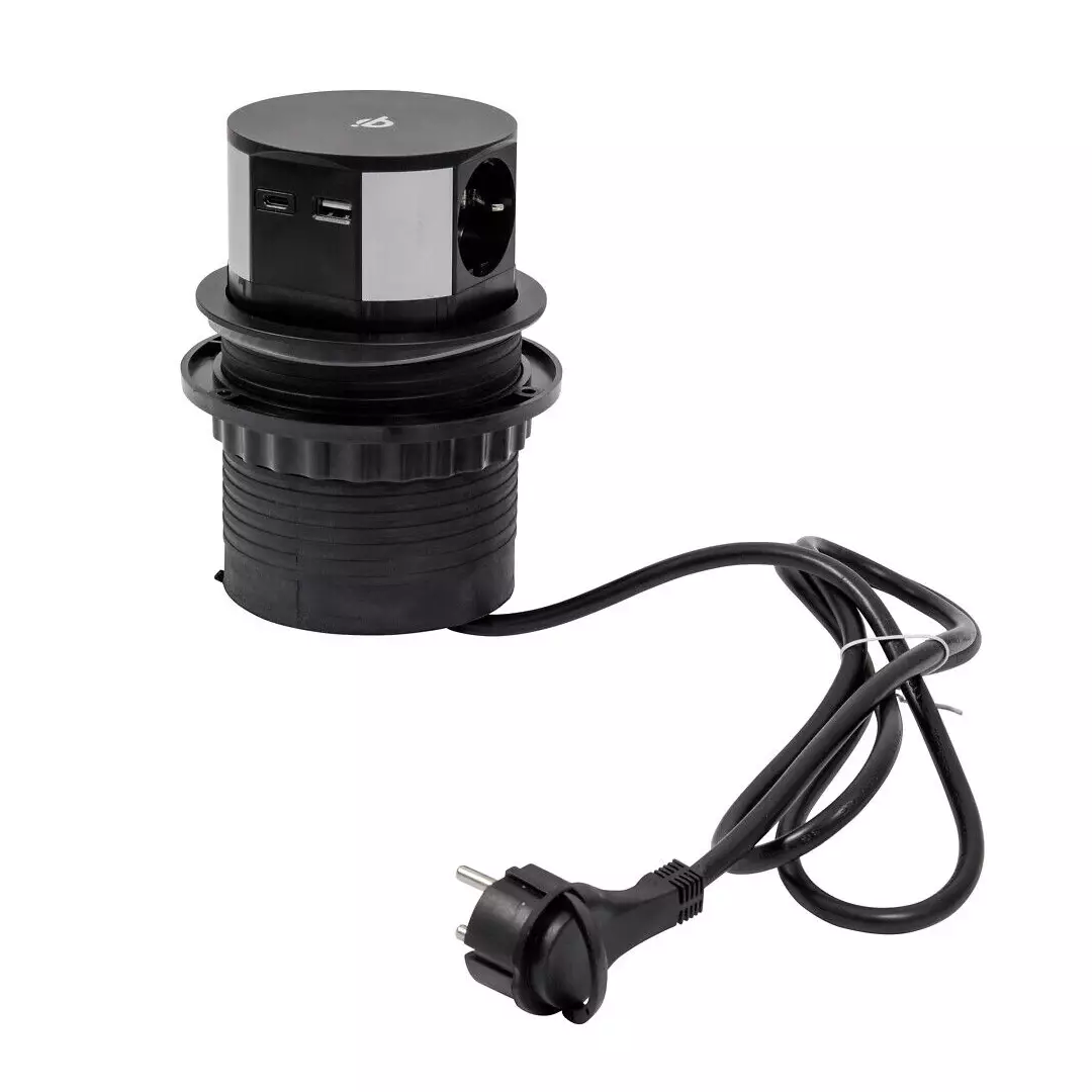 Tyylikäs ja moderni pop-up-pistorasia kotikeittiöön, kotikonttoriin tai toimistoon. Pistorasia integroidaan pöytätasoon, ja sen saa esiin helposti painamalla kantta. Näppärä ratkaisu, kun haluat lisää pistorasioita ilman sotkuisia jatkojohtoja.