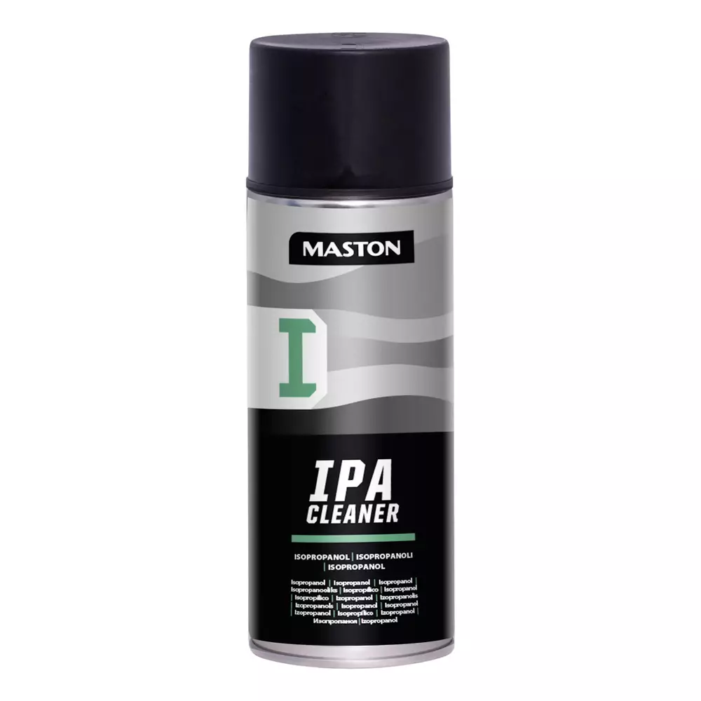 Maston IPA Cleaner Spray on monikäyttöinen isopropanolipohjainen puhdistusaine lian ja rasvan poistamiseen. Nopeasti haihtuva koostumus puhdistaa pinnat tehokkaasti ja sopii useimmille materiaaleille. Suositellaan testaamaan tuotteen sopivuus ensin huomaamattomalle alueelle ennen käyttöä.