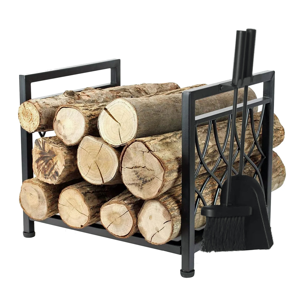 Tyylikkäs puuteline, jossa mukana myös tuhkalapio ja harja. Välineet ovat helposti saatavilla telineen sivulla. Tuote toimitetaan osissa ja se on helppo kasata.