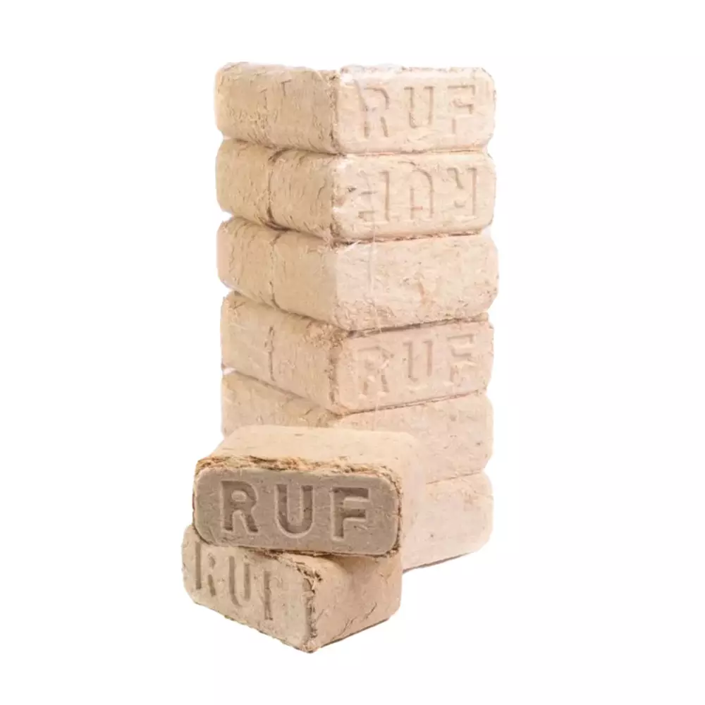 RUF-havupurubriketti on ympäristöystävällinen ja tehokas lämmitysvaihtoehto, joka on valmistettu 100 % puhtaasta, kuorettomasta puusta ilman lisäaineita. Tiivis rakenne ja alhainen kosteus takaavat puhtaan ja pitkän palon ilman räiskymistä.