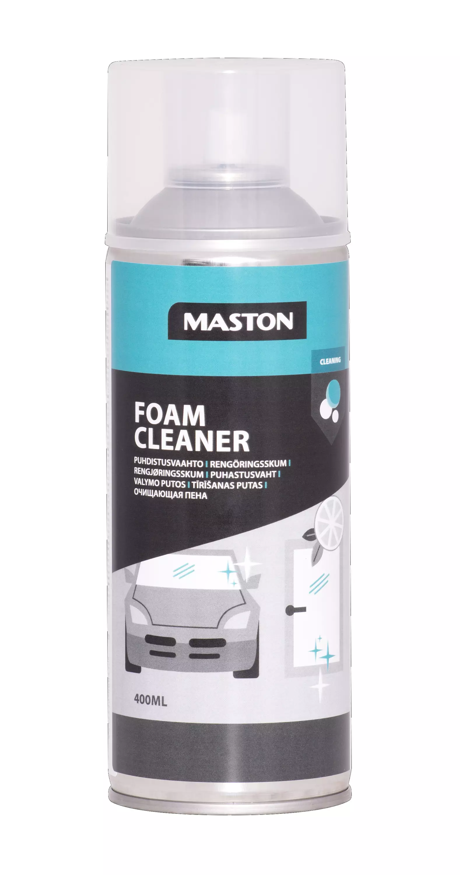 Maston Puhdistusvaahto on tehokas puhdistusaine lähes kaikille koville pinnoille. Puhdistusvaahto on suunniteltu irrottamaan monenlaista likaa kuten rasvaa, nokea ja öljyä. Sopii hyvin lasi- ja peilipinnoille, muoville sekä maalatuille ja lakatuille pinnoille. Miellyttävä sitruunan tuoksu. Käyttö: Ravistetaan hyvin 15-20 sek. ajan. Sumutetaan kohteeseen ja annetaan vaikuttaa hetki, pyyhitään pois nukkaamattomalla paperi- tai kangasliinalla. Toista käsittely tarvittaessa.