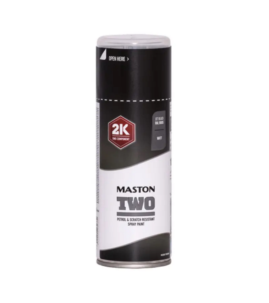 Maston 2K Two- 2-komponentti spraymaali tekee maalaamisesta helppoa. Käyttövalmiissa maalissa on maali ja kovettaja valmiiksi sekoitettuna ja maali kuivuu nopeasti heti suihkutettaessa. 2K Two-spraymaalilla maalaat lähes mitä tahansa pintoja: metallia, alumiinia, kuparia, kromia, puuta, kiveä, lasia, keramiikkaa jne.