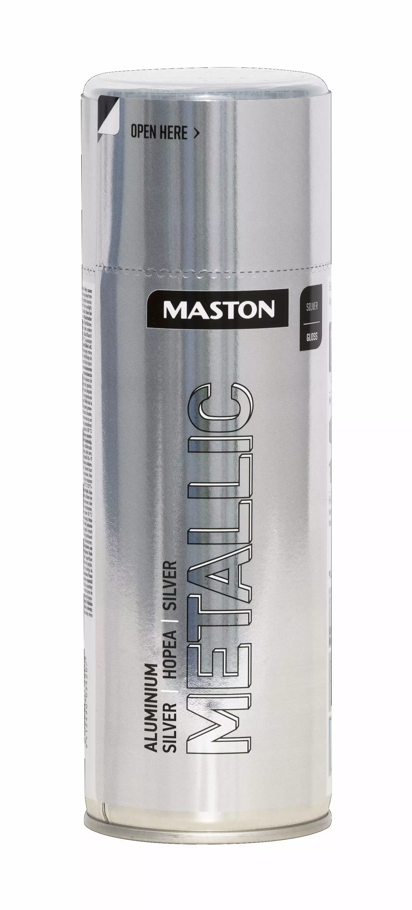 Maston METALLIC on korkealaatuinen akryyli spraymaali, jossa metallipigmenttejä. Erinomainen peittävyys, nopea kuivumisaika, tasainen ja kiiltävä pinta.
