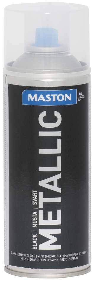 Maston METALLIC on korkealaatuinen akryyli spraymaali, jossa metallipigmenttejä. Erinomainen peittävyys, nopea kuivumisaika, tasainen ja kiiltävä pinta.