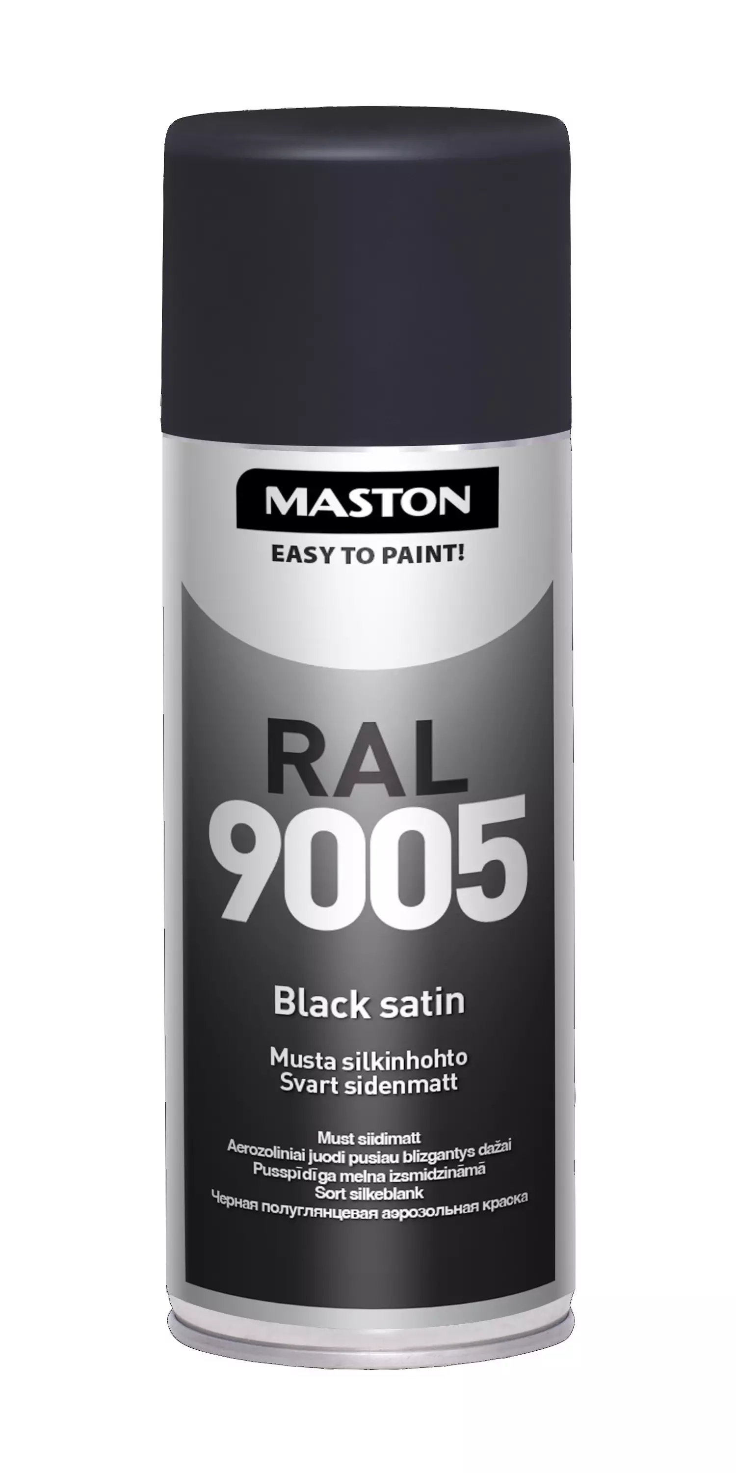 Maston RAL 9005 värisävy ovat teollisuuden ja ammattilaisten suosiman RAL-väristandardin mukainen. Korkealuokkainen, nopeasti kuivuva alkydimaali. Soveltuu puu-, kivi-, metalli-, lasi- ja useimmille muovipinnoille. Soveltuu sekä ulko- että sisäkäyttöön.