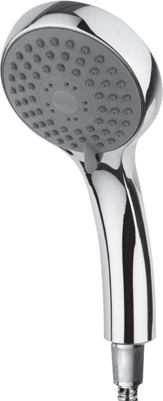 Suihkukahva kromattua muovia. Kolme erilaista suihkukuviota. Suihkupään halkaisija 99 mm. 1/2" liitäntä.