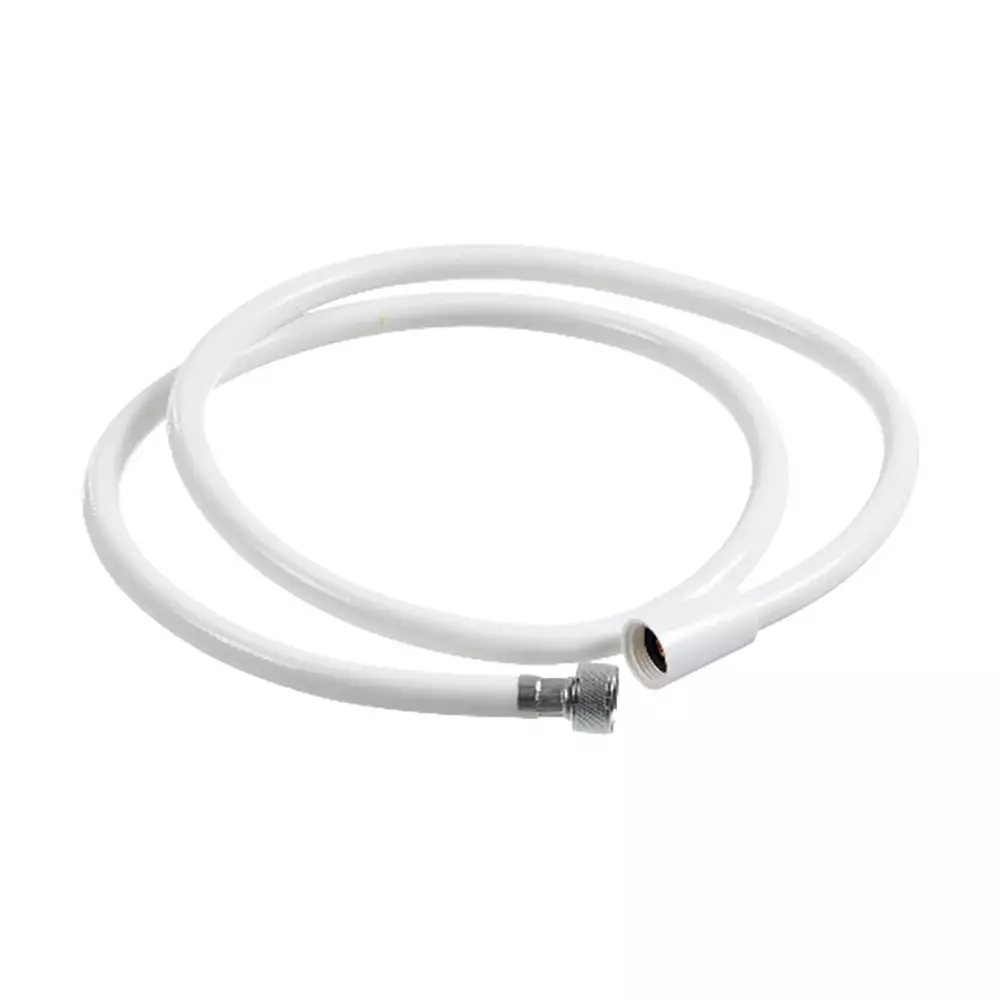 Valkoinen PVC suihkuletku. Pituus 150 cm, 1/2" messinkiliittimet.