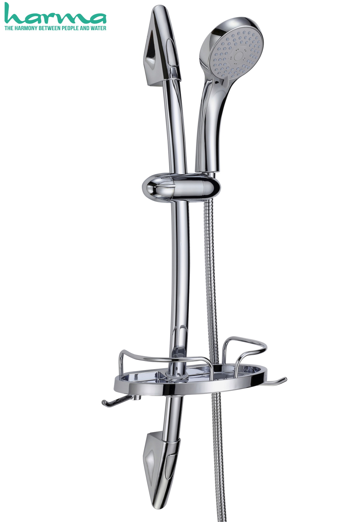 Tyylikäs krominen suihkusetti joka sisältää laadukkaan suihkukahvan, tangon pidikkeineen ja saippuatelineen sekä kromisen suihkuletkun. Täysin valmis setti.