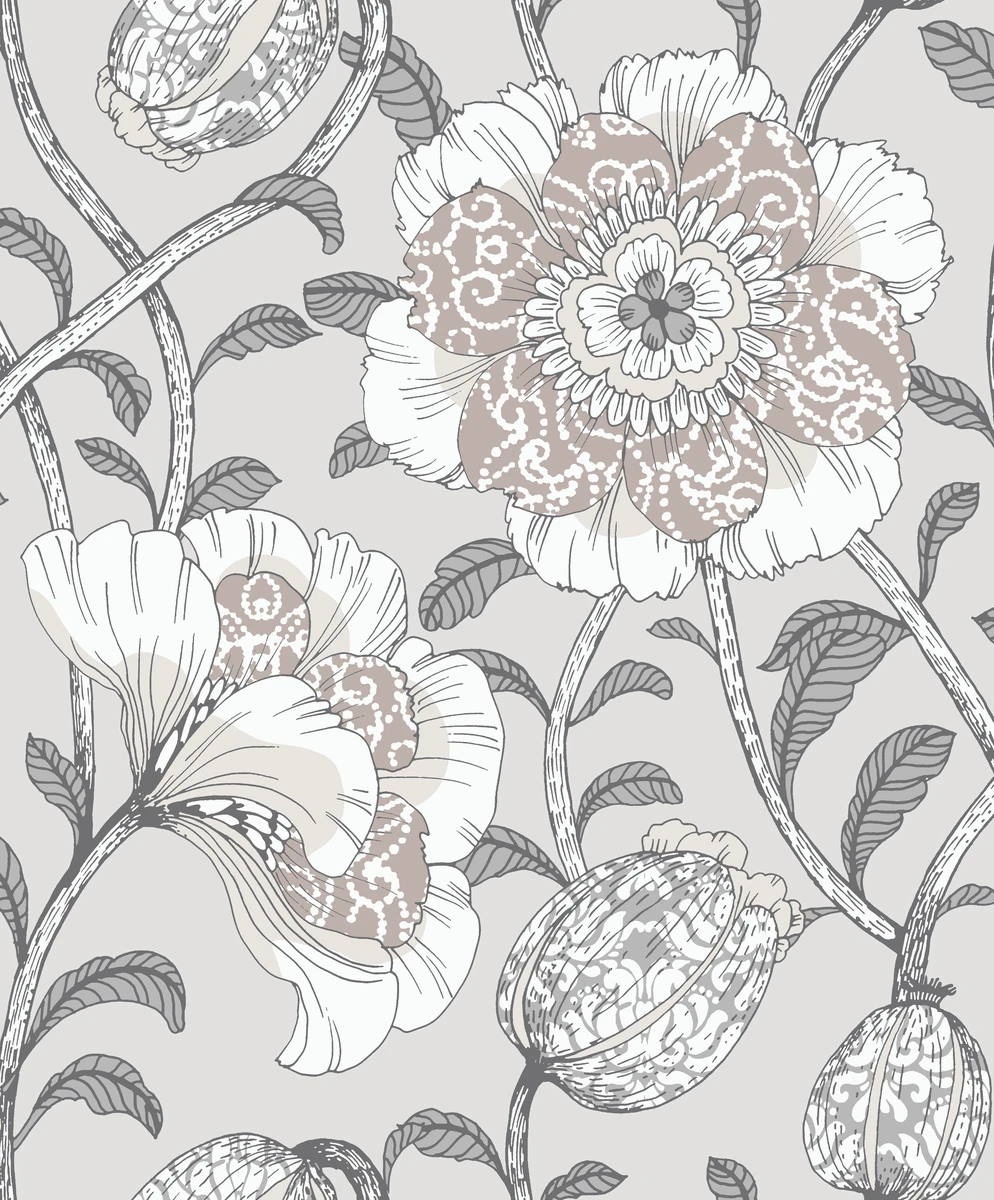 Muuan-tapetti on yksityiskohtainen ja näyttävä. Tanja Orsjoen suunnittelema vivahteikas kukkatapetti luo unenomaista tunnelmaa aamuöisestä puutarhasta, jossa värit ovat vielä hillittyjä.