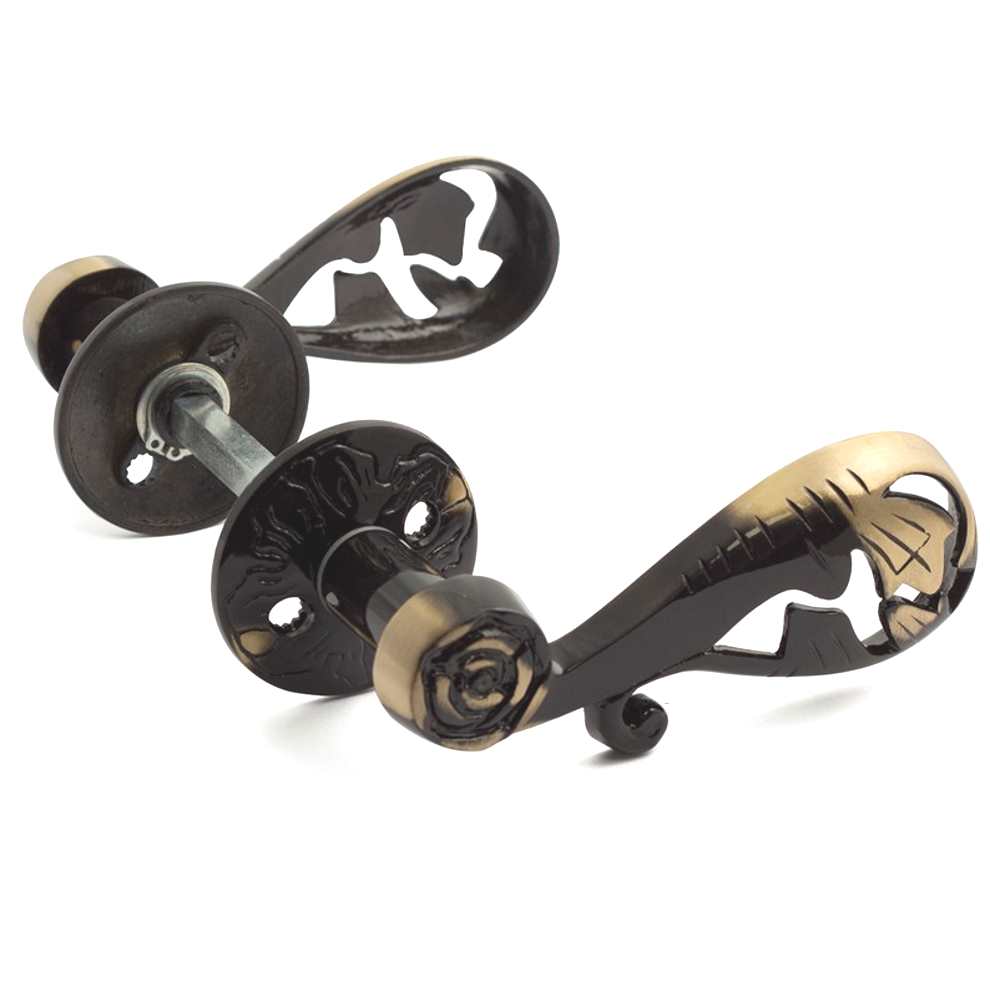 Antiikkisen näköiseksi patinoitu messinkinen ulko-ovenkahva. Ilman palautusjousta.