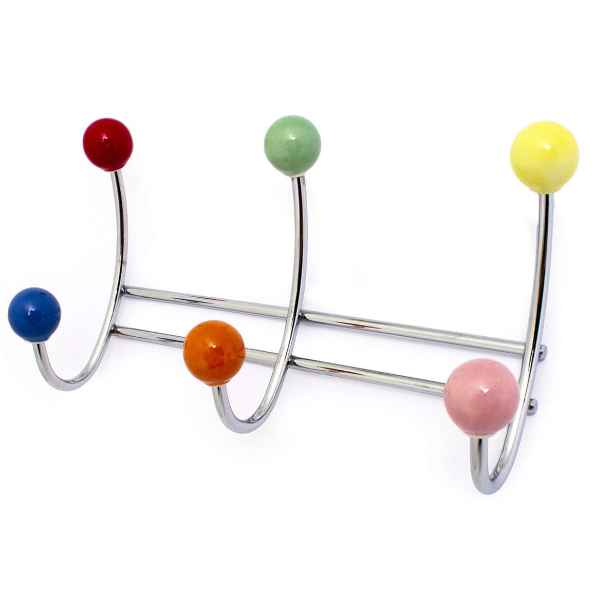 VAATENAULAKKO BERRY-3 Moniväri / kromattu HABO Naulakko kromattua terästä, moniväriset posliininupit. Sopii yhtä hyvin lastenhuoneeseen kuin eteiseenkin. Naulakko, jossa reilusti tilaa vaatteille, käsineille, pusseille jne.