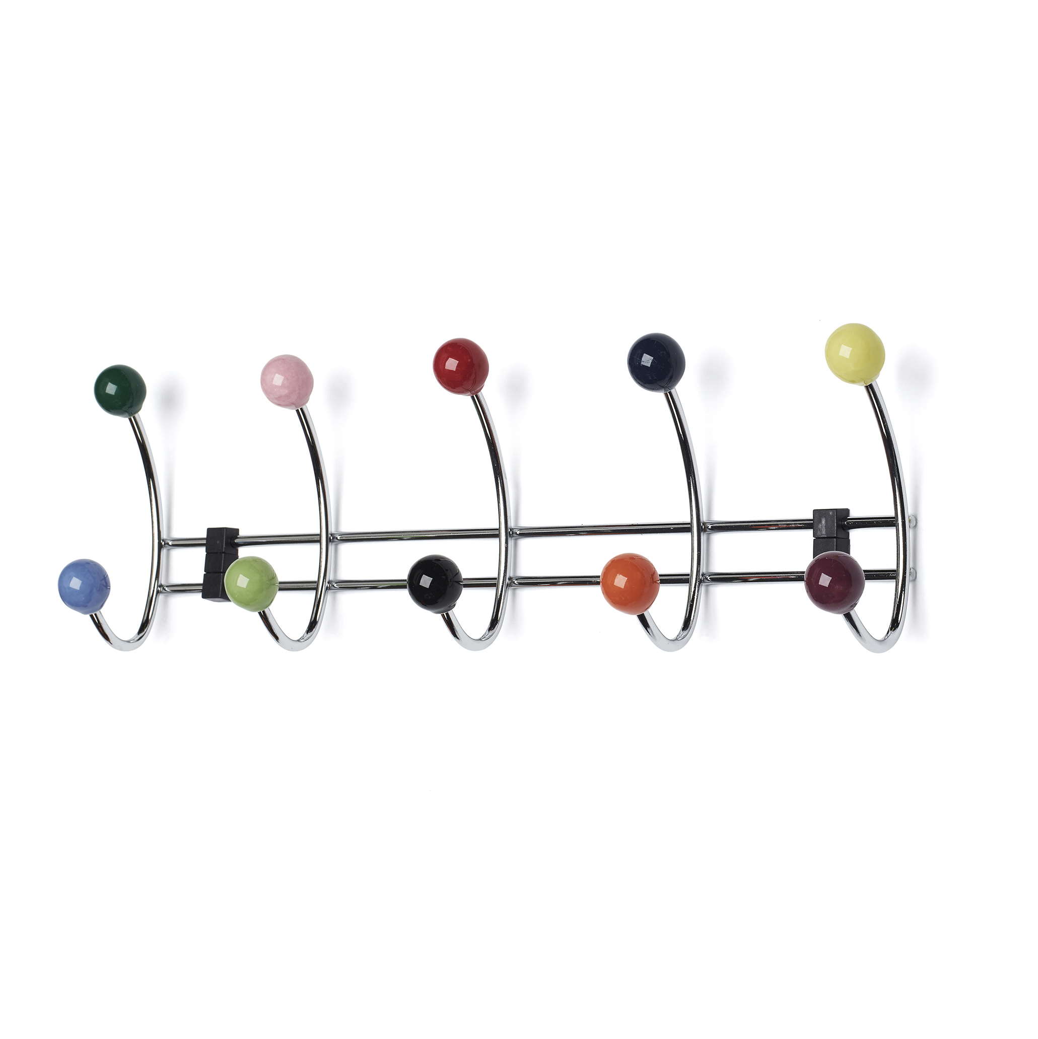 VAATENAULAKKO BERRY-5 Moniväri / kromattu HABO Naulakko kromattua terästä, moniväriset posliininupit. Sopii yhtä hyvin lastenhuoneeseen kuin eteiseenkin. Naulakko, jossa reilusti tilaa vaatteille, käsineille, pusseille jne.