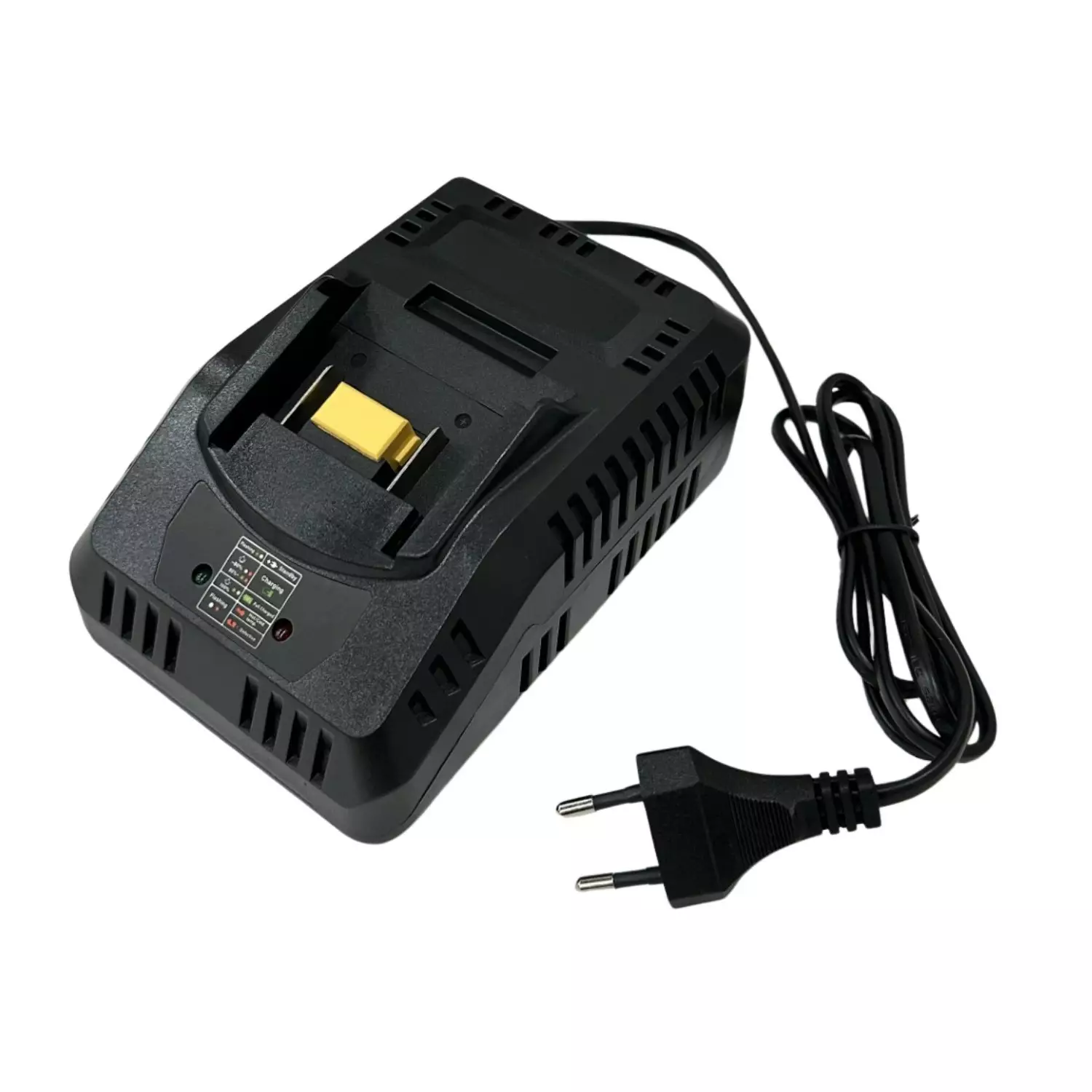 Akkulaturi sopii Jonköping 18-20V akkujen lataamiseen, mutta on lisäksi mekaanisesti yhteensopiva muidenkin akkujen kanssa kuten Makitan.