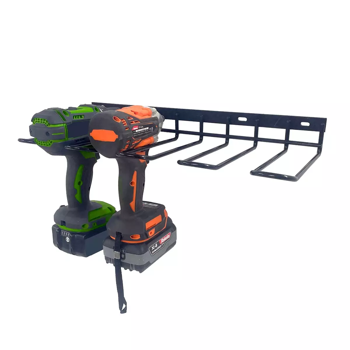 Porakoneteline tuo järjestystä niin autotalliin kuin työpisteellekkin. Hylly pitää työkalut hyvässä järjestyksessä ja helposti saatavilla. Tukeva metallinen teline kiinnitetään seinään neljällä ruuvilla.