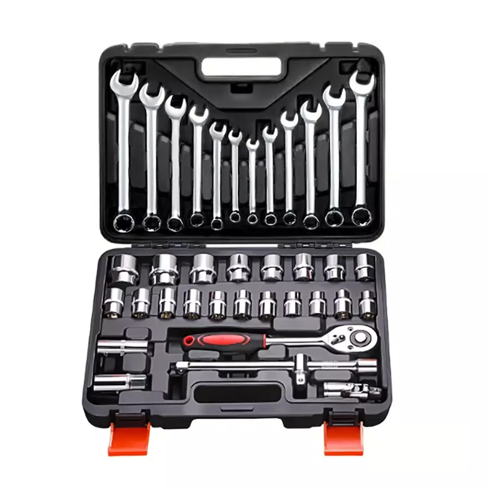 Tämä sarja yhdistää hylsysarjan ja kiintoavainsarjan yhteen kätevään salkkuun. Settiin sisältyy 1/2" räikkä suunnanvaihdolla, 19 erikokoista hylsyä sekä jatkovarsi ja yleisnivel, jotka helpottavat työskentelyä vaikeissa paikoissa. Hylsyjen lisäksi kuuluu 12 yleisintä lenkkiavainta, joten tämä työkalusarja on eriomainen vaihtoehto kotikäyttöön erilaisiin korjaus- ja asennustöihin. Loistava valinta, kun haluat kompaktin mutta kattavan työkalupaketin.