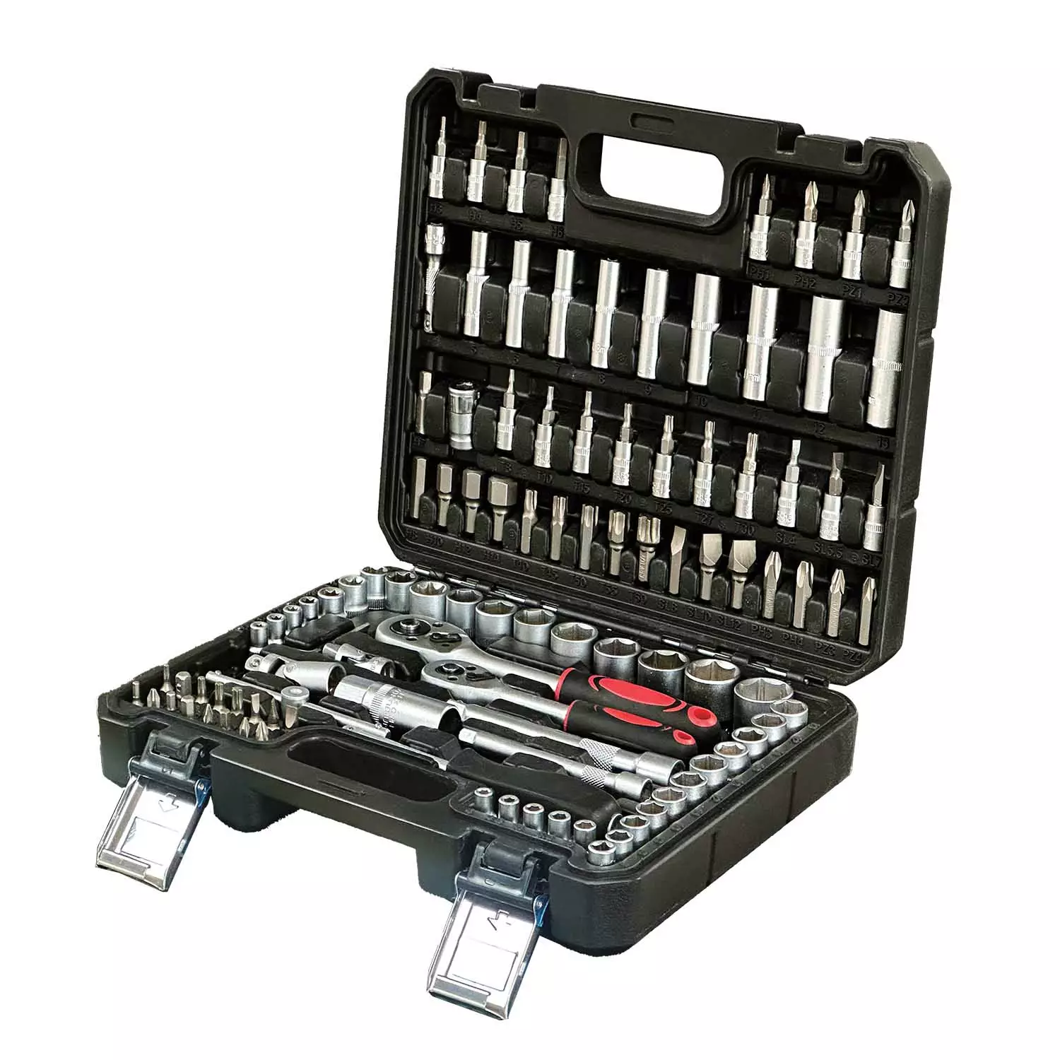 Kattava 108-osainen räikkäsarja on kätevä valinta niin kotiverstaalle, autotalliin kuin harrastajankin työkalupakkiin. Mukana tulevat yleisimmät 1/4" ja 3/8" hylsyt, pitkät hylsyt, kärkihylsyt, adapterit sekä räikät molemmille kokoluokille. Laaja valikoima kärkiä ja erikoishylsyjä tekee sarjasta erinomaisen yleiskäyttöön. Kaikki työkalut on pakattu tukevaan muovikoteloon, jossa ne pysyvät järjestyksessä ja kulkevat helposti mukana.