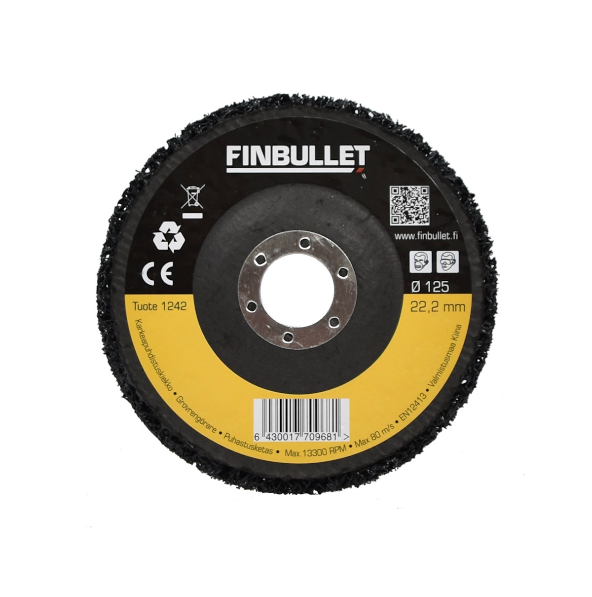 Lasikuiturunkoinen karkeapuhdistuskiekko. Koko 125x22,2mm.