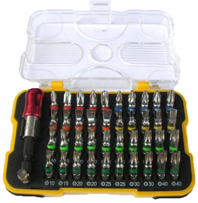 Monipuolinen 42-osainen kärkisarja tarjoaa kaiken tarvittavan ruuvaustöihin niin kotona kuin ammattilaiskäytössä. Setti sisältää yleisimmät ruuvauskärjet, kuten PH, PZ, SL ja Torx, sekä kätevän kärkipitimen ja hylsynpitimen. Bitskärjet on värikoodattu nopeaa tunnistusta varten, ja ne on pakattu selkeään ja kestävään säilytyskoteloon, joka kulkee helposti mukana työmaalle tai autotalliin.
