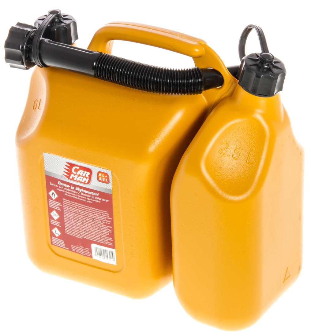 Kestävä ja helppokäyttöinen kombikannu öljylle ja polttoaineille jolla kuljetat ja sekoitat oikean suhteen helposti esimerkiksi 2tahti moottoreihin.
