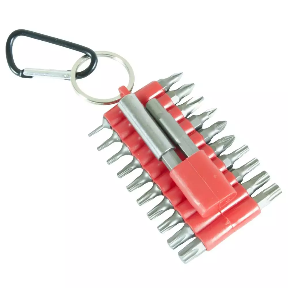 - Valitse tarvittava kärki ja kiinnitä se joko suoraan porakoneeseen tai käytä mukana tulevaa magneettista kärkipidikettä tai jatkovartta. Kärjet voidaan nopeasti vaihtaa vetämällä ne ulos pidikkeestä ja työntämällä uusi kärki paikalleen. Kiinnitä vyölenkki vyöhösi tai työkaluvyöhösi, jotta kärjet ovat aina helposti saatavilla.