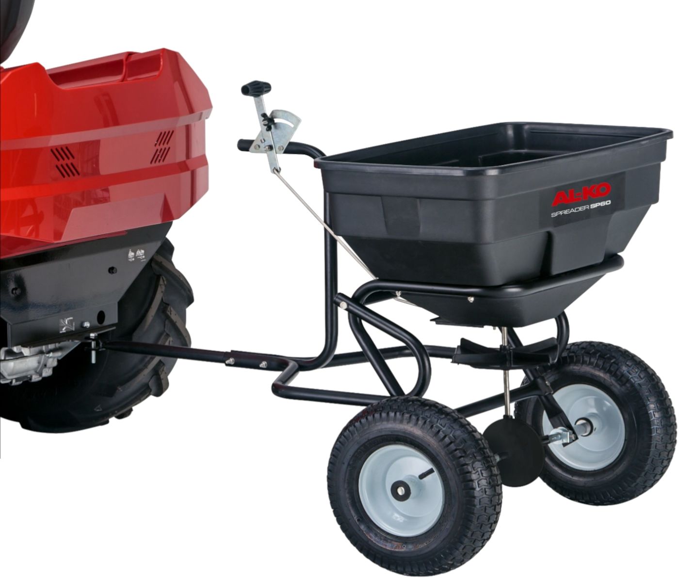 AL-KO:n SP 60 vedettävä lannoitelevitin, traktorille tai mönkijälle. Keskipakoislevyllä tapahtuva sirotus. Tukevat ilmakumirenkaat.