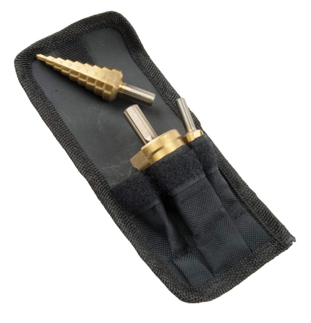 Procat 3-osainen levyporasarja säilytyspussilla. Settiin kuuluu 4-12 mm, 4-20 mm ja 4-32 mm porat.