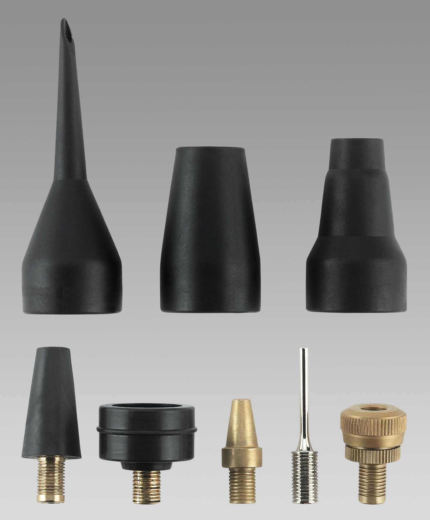 Einhell sovitinsarja sisältää mm. kuulaneulan pallojen täyttämiseen, sovittimen polkupyörän venttiilejä varten, sovittimen ilmapatjojen ja lasten uima-altaiden täyttämiseen sekä sovittimen ruuviventtiilejä varten sekä ilmanpoistosovittimen.