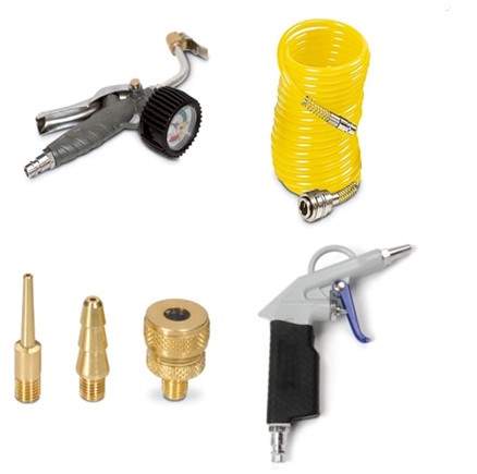 Paineilmatyökalusarja sisältää yhteensä 6 erillistä osaa,