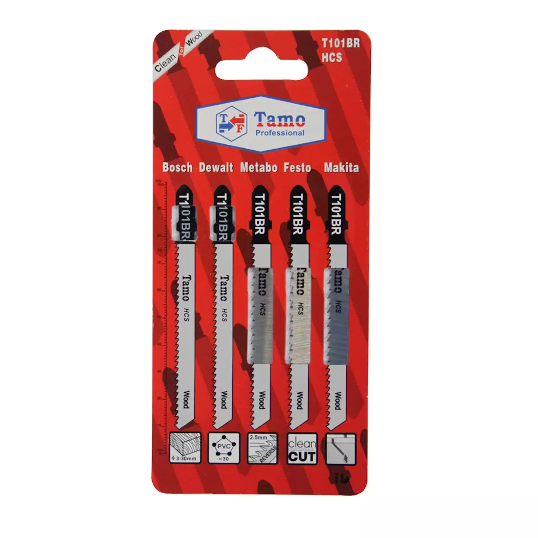 Kuviosahanterä Puulle. Soveltuu 3-30mm paksun puun ja muovin hienoon leikkaamiseen. Terän koko pituus 100mm. T-kiinnitys. Yhteensopiva yleisimpien konemerkkien kanssa.