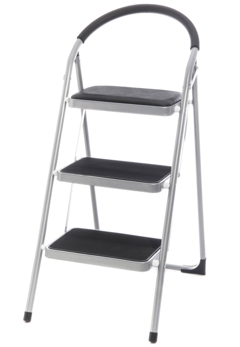 Kokoontaitettava porrasjakkara on käytännöllinen apuväline ja kuuluu jokaisen kodin vakiovarusteisiin. Kolmen askelman jakkara pehmeällä muovipäällysteellä. Maksimikantavuus 150 kg