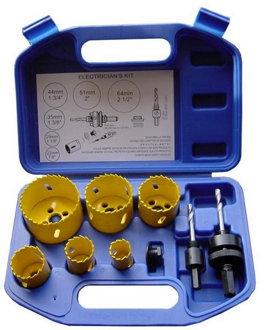 Sisältää BI-Metal terät; 22mm, 28mm, 35mm, 44mm, 51mm, 63mm. 2kpl istukkoja terille. Pakattu muovisalkkuun.