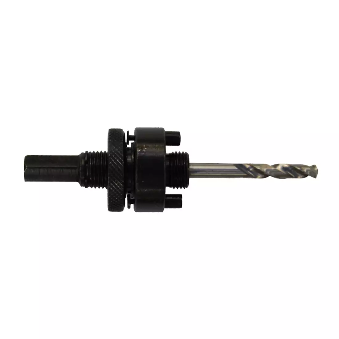 Kuusiokantanen porakone adapteri turvatapeilla bi-metalli reikäsahanterille. Käsi kiristeinen. Soveltuu kokoihin 32–210 mm. kara 13 mm, sisältää keskiterän.