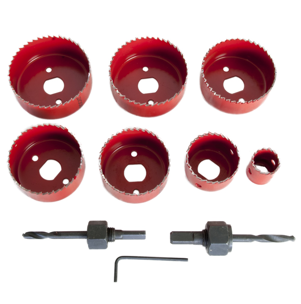 Näppärä pieni 9 osainen reikäsahasarja. Tämä reikäsahasarja sisältää kaikki yleisimmät kotitalouksissa käytettävät koot ja se on oiva apuväline putkimiehille, sähkömiehille sekä harrastelijoille.
