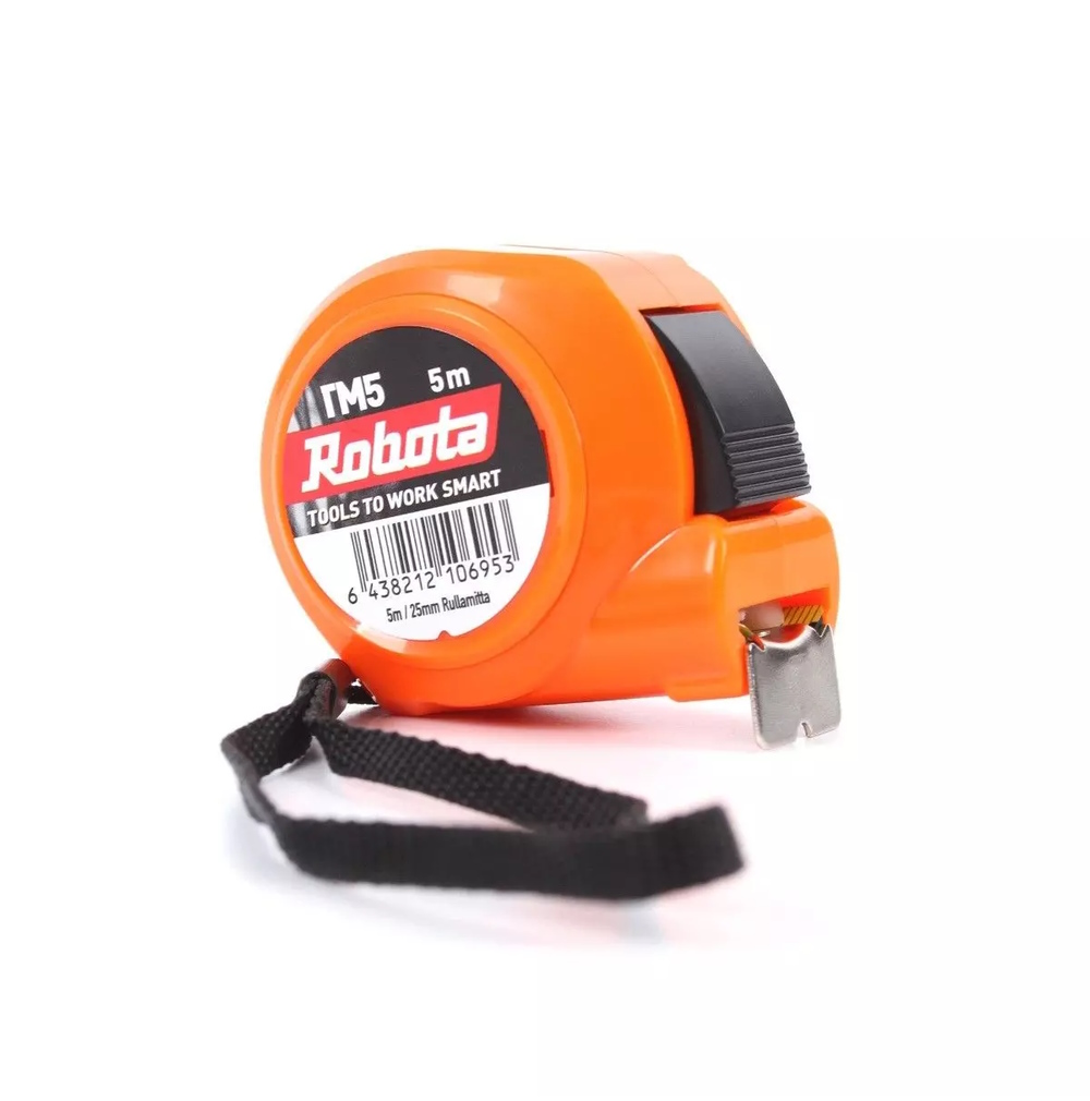 Rullamitta on timpurin ja asentajan tärkein työkalu. Se varmistaa, että mitat on oikein ja paikat suorassa. Robotan edistyksellinen rullamitta on suunniteltu juuri timpurin ja asentajan käyttöä varten. Robota MT sarjan rullamitan suunnittelussa on kuunneltu sen käyttäjiä. Mitan kotelossa ei ole kumipintaa, joka ikävästi tarttuisi taskusta ulosvedettäessä mihinkään kiinni. Mitan pinta on erikoiskäsitelty, jotta se pysyy miellyttävästi käyttäjänsä kädessä. Materiaali on iskunkestävää ABS muovia. Mitan sisältä löytyy erikois nylon päälysteinen CE II luokan sertifioitu nauha. Huomioitavaa on, että tämän mitan mitta-asteikon tulostukseen on käytetty uudenlaista painotekniikkaa, jolla kontrasti on saatu optimaaliseksi jotta heikkonäköinenkin käyttäjä saisi helpommin selvää mitan antamasta arvosta. Kokonaisuuden viimeistelee rannelenkki ja erityisen tukevasti kiinnitetty ja nauhan pään täysin suojaava mittauskoukku. Robotalla mittaat tarkasti.