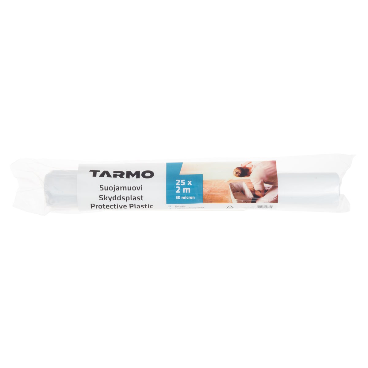 Vahva suojakalvo tilojen suojaamiseen remontin aikana. Pituus 25 m, leveys 2 m. Vahvuus 30 mikronia (0,03 mm). Riittää 50 m² alueelle.