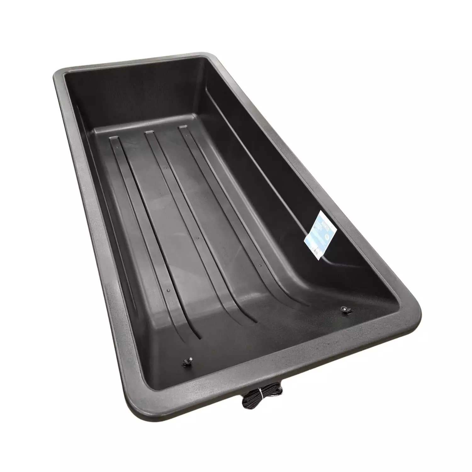 Kestävästä muovista valmistettu ahkio esimerkiksi pilkkireissuille tai halkojen hakuun liiteristä.