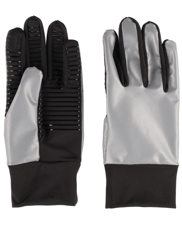 Sormikkaiden päälliosa on joustavaa heijastavaa materiaalia, koko musta kämmenosa liukuesteellä.