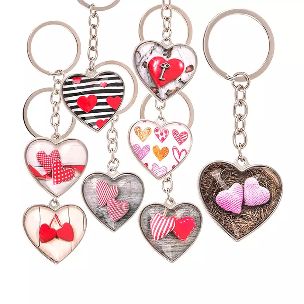 Lasisydämellä varustettu avaimenperä, jossa on kauniita sydänaiheisia kuoseja. Kirkas lasipinta tuo kuviin syvyyttä ja viimeistelee ilmeen. Sopii hyvin avaimiin, laukkuun tai pieneen lahjaan.