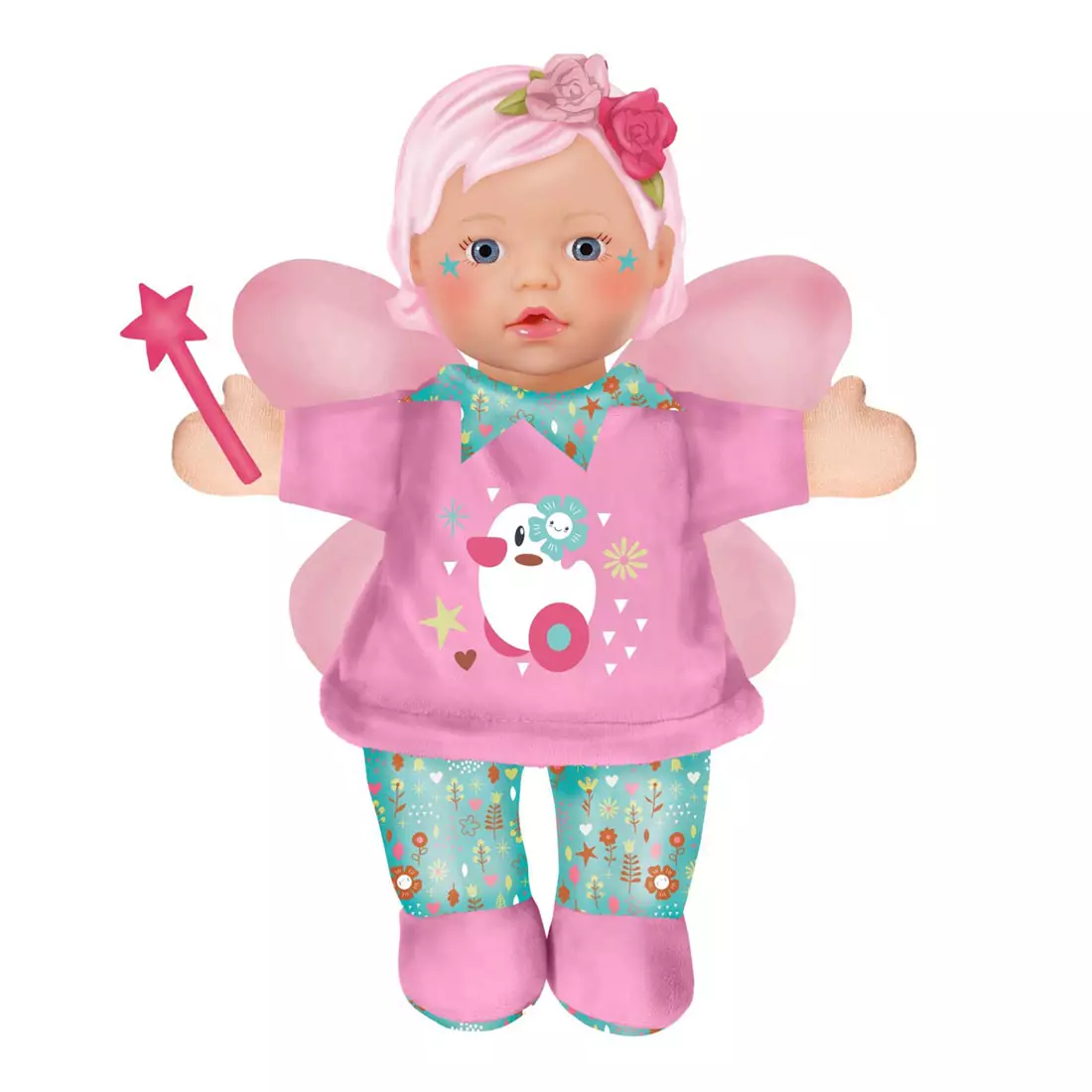 Baby Born nukke Fairy for babies 26 cm sopii vauvojen ensimmäiseksi nukeksi. Keijunuken vartalo on pehmeä ja pää on valmistettu muovista. Nukella on söpöt keijunsiivet selässä, taikasauva kädessä ja kukkia päässä. Leikit voivat alkaa!