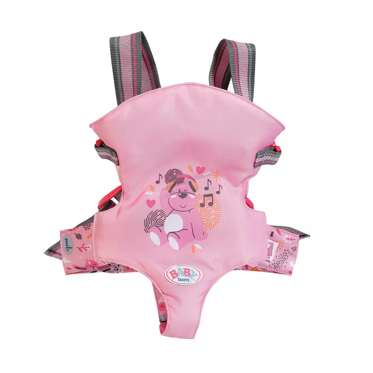 Baby Born rintareppu on suunniteltu nuken kuljettamiseen mukana leikeissä ja retkillä. Pinkki kuviointi tuo ilmeeseen iloa, ja säädettävät olkahihnat helpottavat sopivan istuvuuden löytämistä. Rintarepun avulla nukke kulkee kätevästi mukana ja pysyy lähellä leikin aikana.