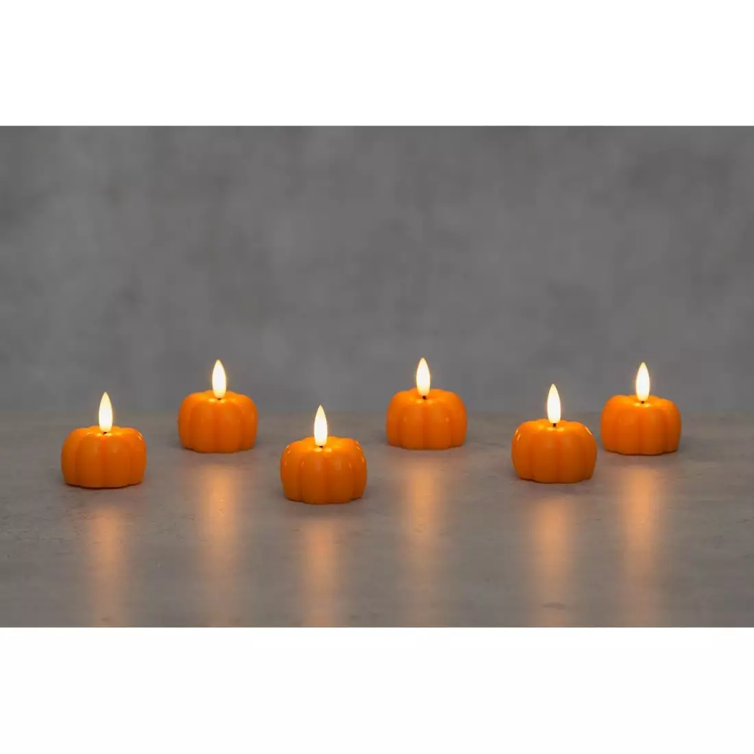 Pienet paristokäyttöiset kurpitsanmuotoiset LED-kynttilät lepattavalla 3D-liekillä tuovat upean lisän esimerkiksi Halloweenin kattauksiin ja muihin koristeluihin. Ajastintoiminto 6h on/18h off. Paristo 1 x CR2032 (sisältyy).