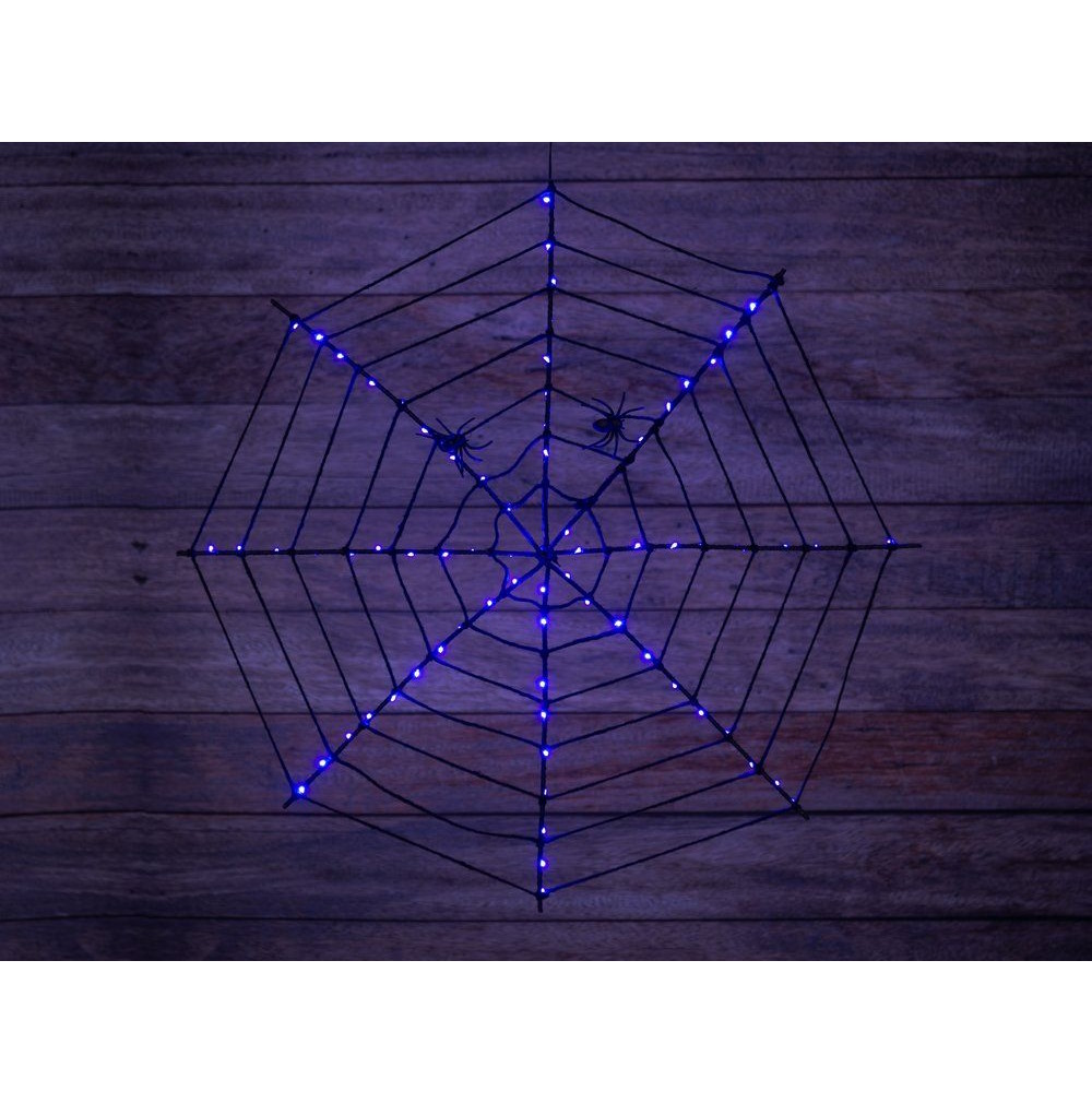 Nosta Halloween-koristelusi uudelle tasolle. Näyttävää hämähäkinverkkoa valaisee 80 kpl violettia LED-valoa ja siinä kiipeilee kaksi hämähäkkiä. Paristotoiminen verkko on hyvin kevyt, joten se on helppo kiinnittää mihin vain.