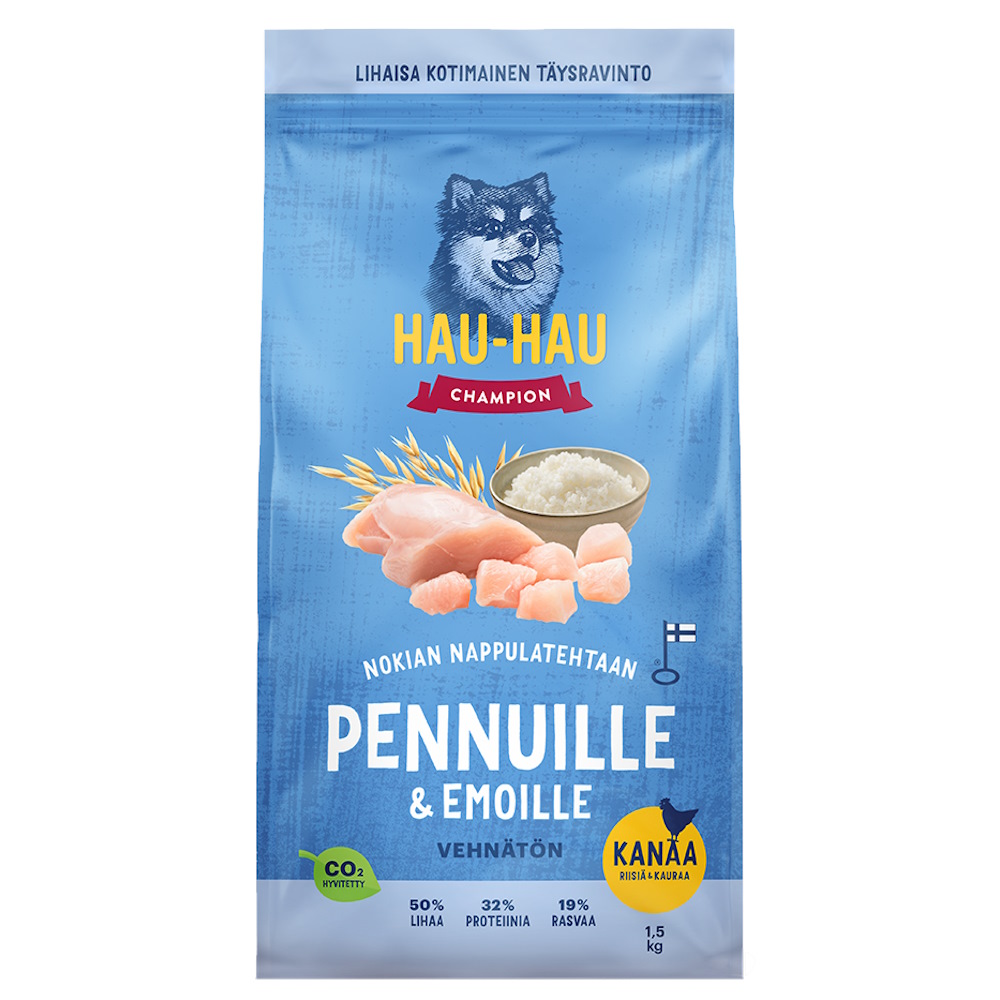 Hau-Hau Champion Pennuille ja emoille Kanaa, riisiä & kauraa 1,5kg