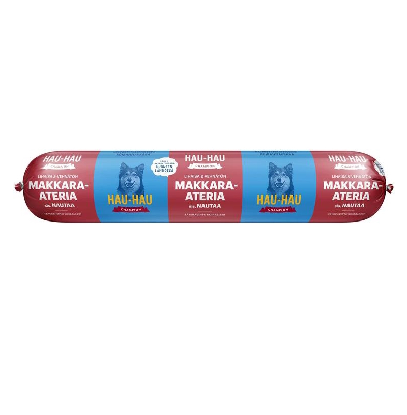 Hau Champion Makkara-ateria siipikarjaa ja lohta on vehnätön ja lihaisa täysravinto kaikille koirille. Huolella suunniteltu resepti sisältää kaikki koirasi tarvitsemat ravintoaineet. Muotonsa pitävä makkara sopii hyvin ateriaksi sellaisenaan, kuivaruoan lisukkeeksi tai makupaloiksi harrastuksiin. Koiranmakkara säilyy avaamattomana huoneenlämmössä, joten se on mukava ottaa mukaan matkalle tai metsäretkelle.
