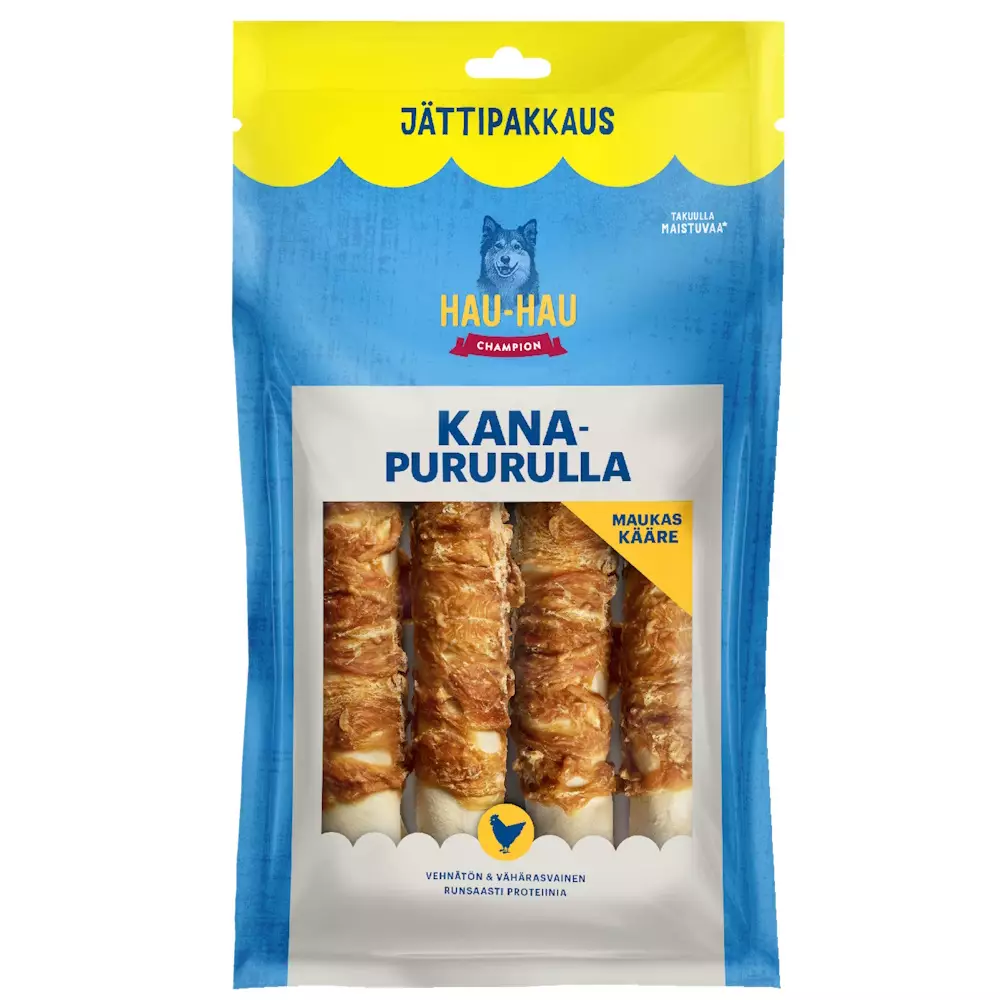 Hau-Hau Champion Kanapururulla 25 cm – 4 kpl (440 g) on maukas ja proteiinipitoinen puruluu, joka on päällystetty herkullisella kanafileellä. Tämä klassikkopuruluu tarjoaa koirallesi sekä maittavan herkun että hyödyllistä tekemistä. Pureskelu auttaa edistämään hampaiden ja ikenien hyvinvointia, samalla kun se tarjoaa virikettä ja ajanvietettä kaikenkokoisille koirille.