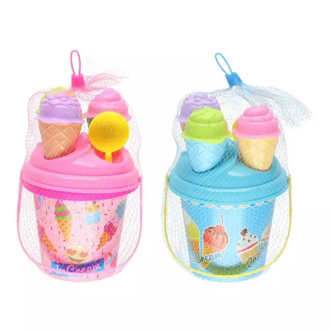 Värikkäät hiekkalelut jäätelöaiheisessa ämpärissä. Mukana jäätelötötteröitä ja jäätelökauha. Tötteröt voi säilyttää ämpärin kannen koloissa. Ikäsuositus 18kk+.