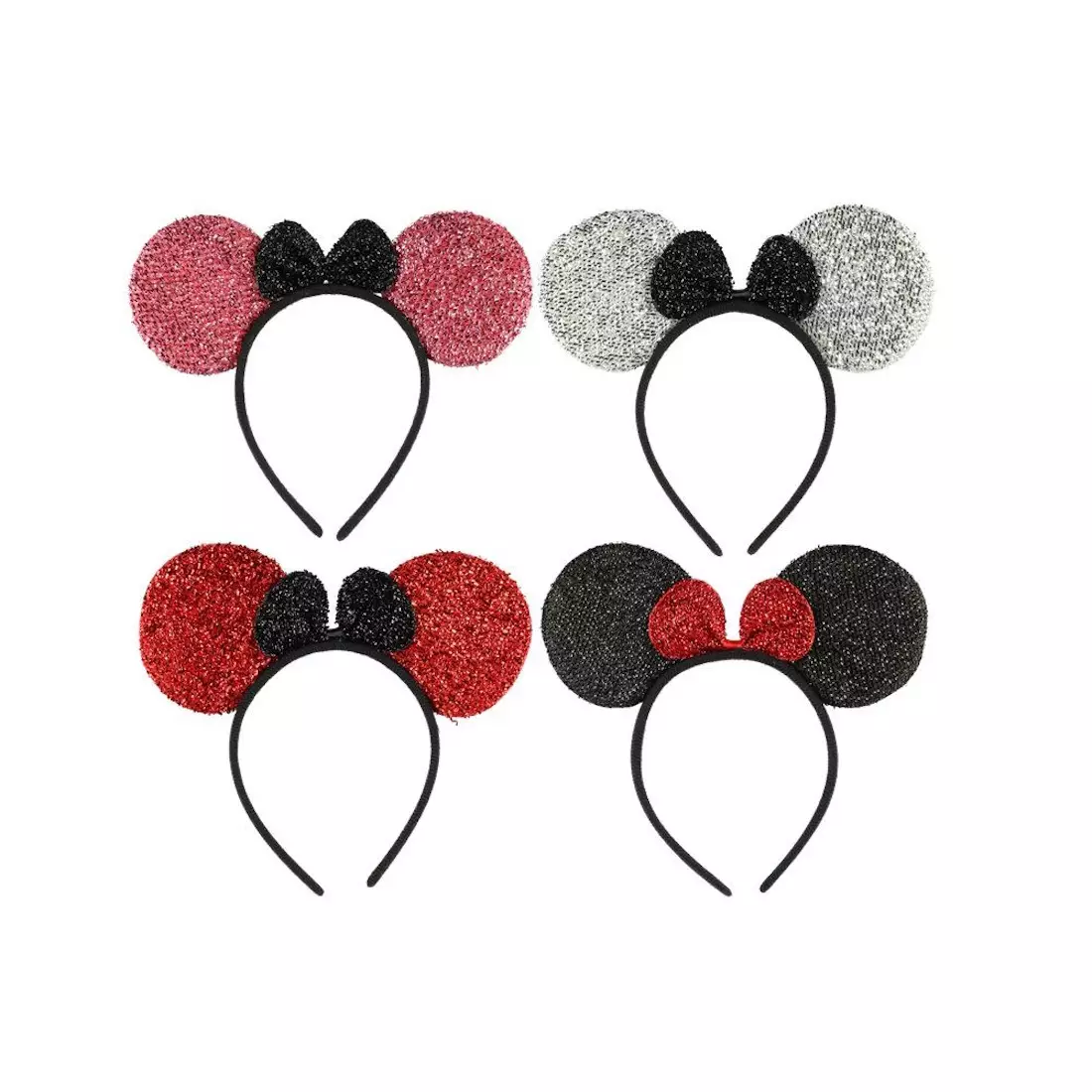 Hiuspanta kimaltelevilla korvilla ja rusetilla. Panta soveltuu täydellisesti naamiaisiin, lastenjuhliin, vappuun ja muihin hauskoihin hetkiin.