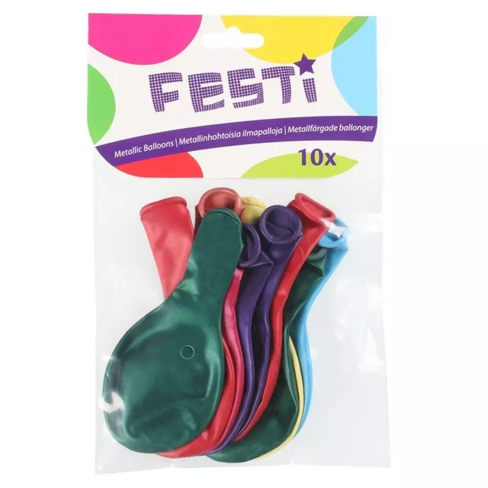 Metallinhohtoiset luonnonkumista valmistetut ilmapallot syntymäpäiville, vappuun ja muihin juhliin. Halkaisija 26 cm.