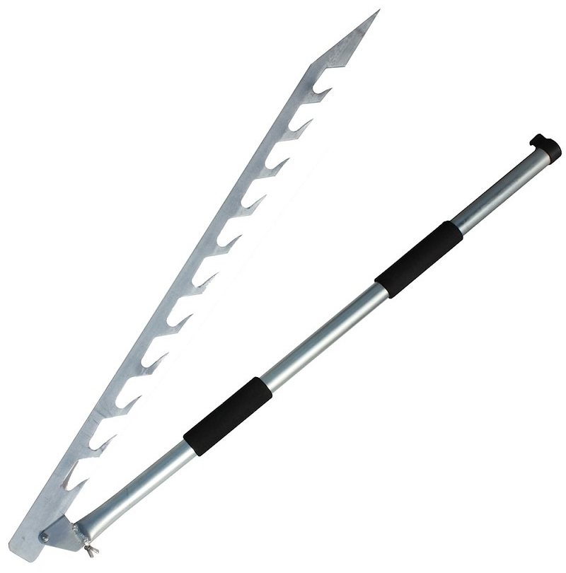 Jääsaha metallivarrella. 65MN terästä. Pituus 1,07m kokoontaitettuna ja 2,02m avattuna. Paino 2,5kg.